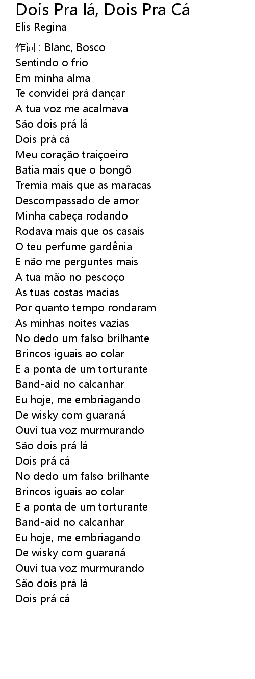 | Song | Dois Pra lá, Dois Pra Cá |