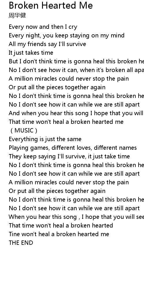 | [00:38.260] | But I don' t think time is gonna heal this broken heart |