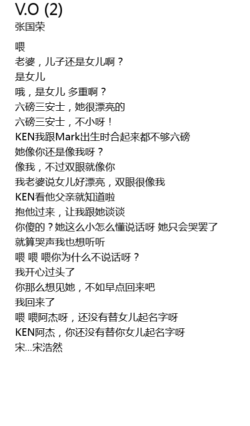 | [00:01.99] | 老婆,儿子还是女儿啊? |
