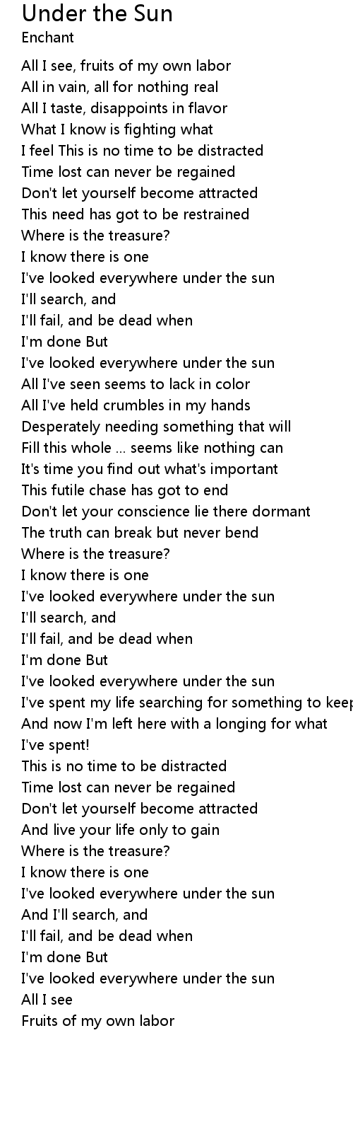 | I've looked everywhere under the sun | |