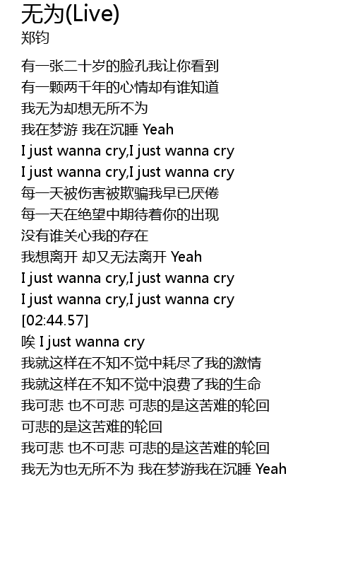 | [02:22.00] | I just wanna cry,I just wanna cry |