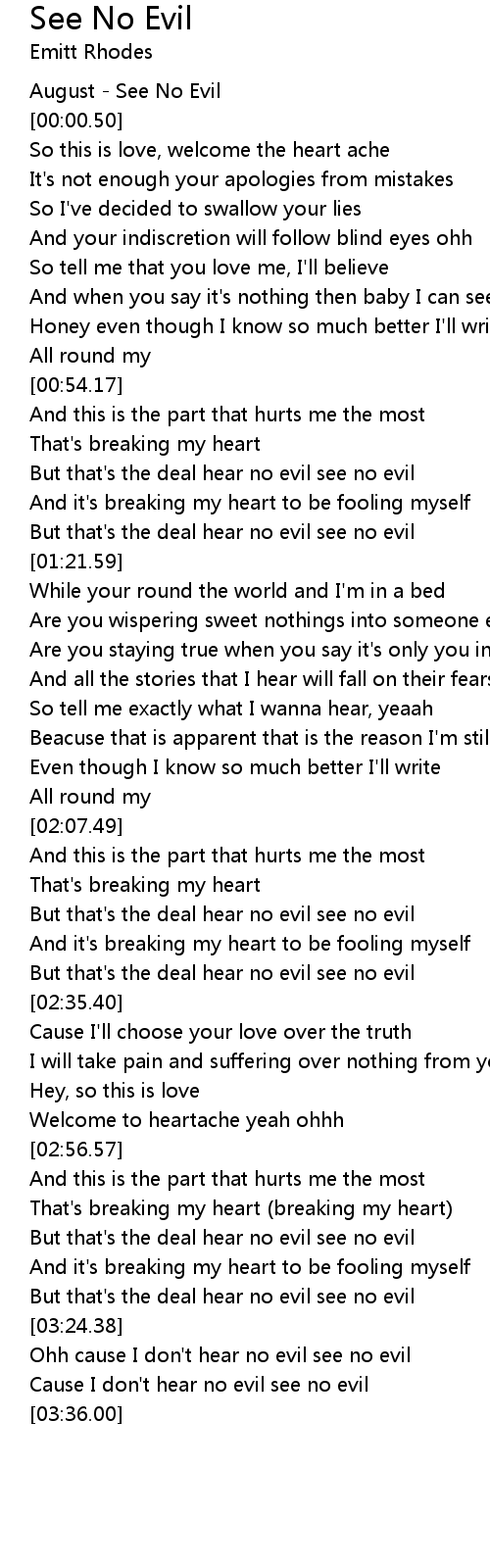 Ohh cause I don't hear no evil see no evil |