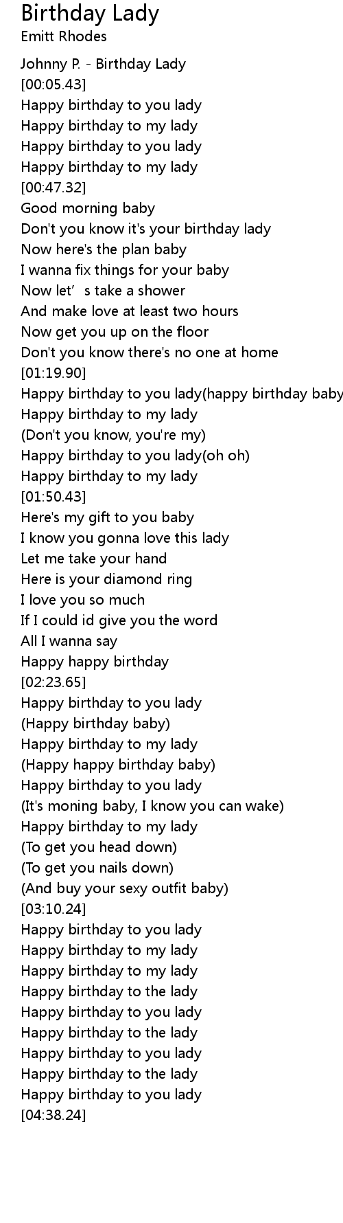 | [00:52.91] | Don' t you know it' s your birthday lady |