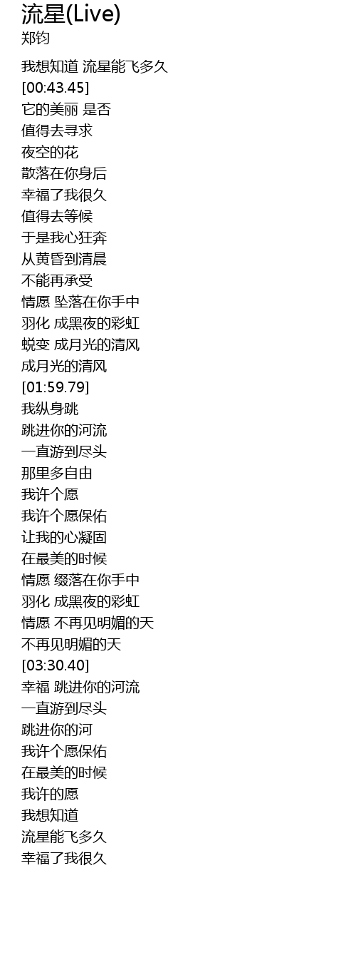 | [00:37.93] | 我想知道 流星能飞多久 |