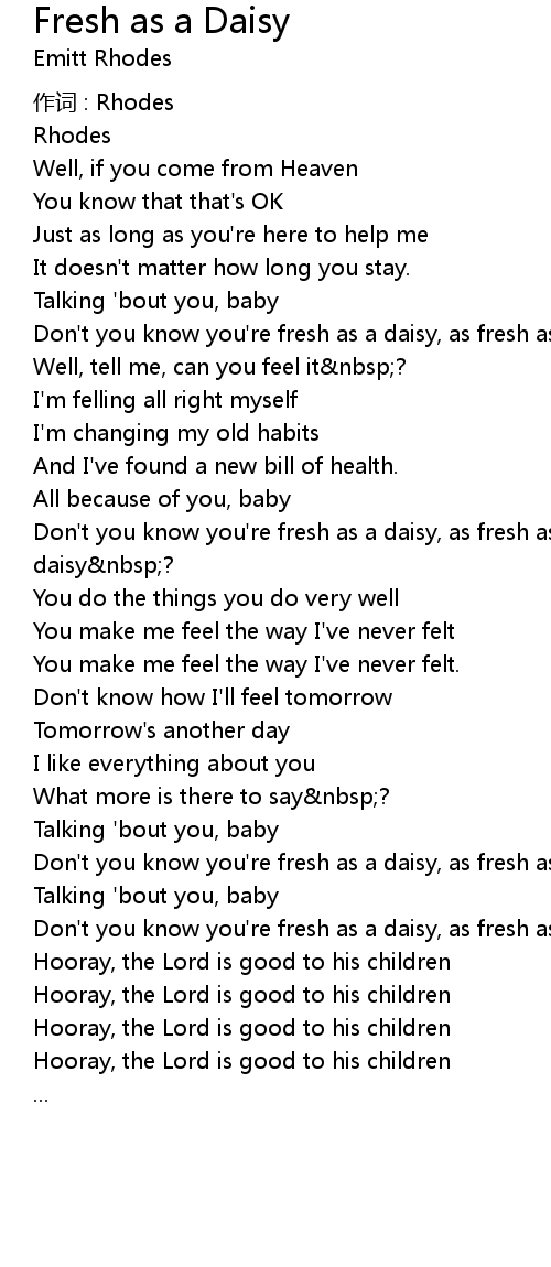 | Don' t you know you' re fresh as a daisy, as fresh as a daisy, as fresh as a daisy nbsp? | |