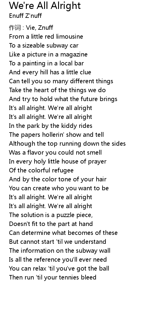 | It' s all alright. We' re all alright | |
