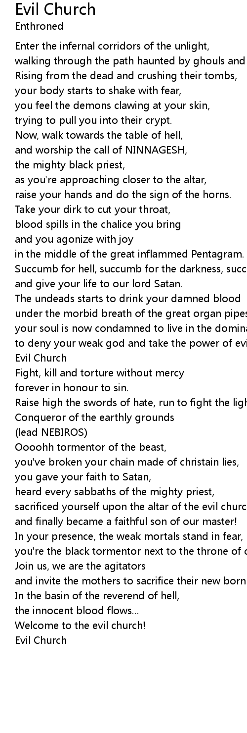 Succumb for hell, succumb for the darkness, succumb for the evil |