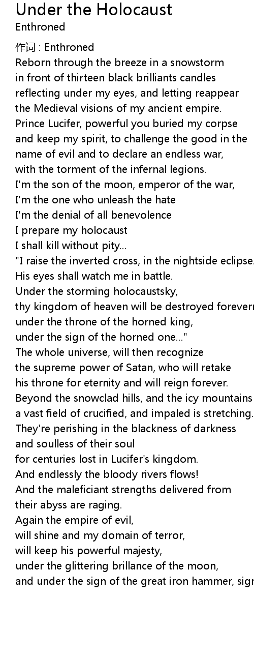 | "I raise the inverted cross, in the nightside eclipse... | |
