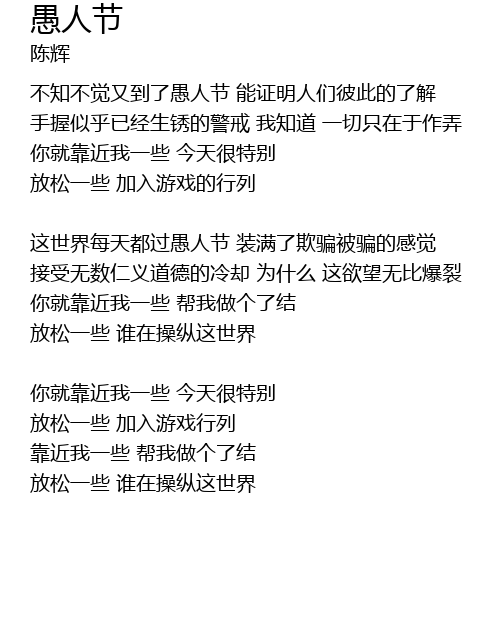| 这世界每天都过愚人节 装满了欺骗被骗的感觉 | |