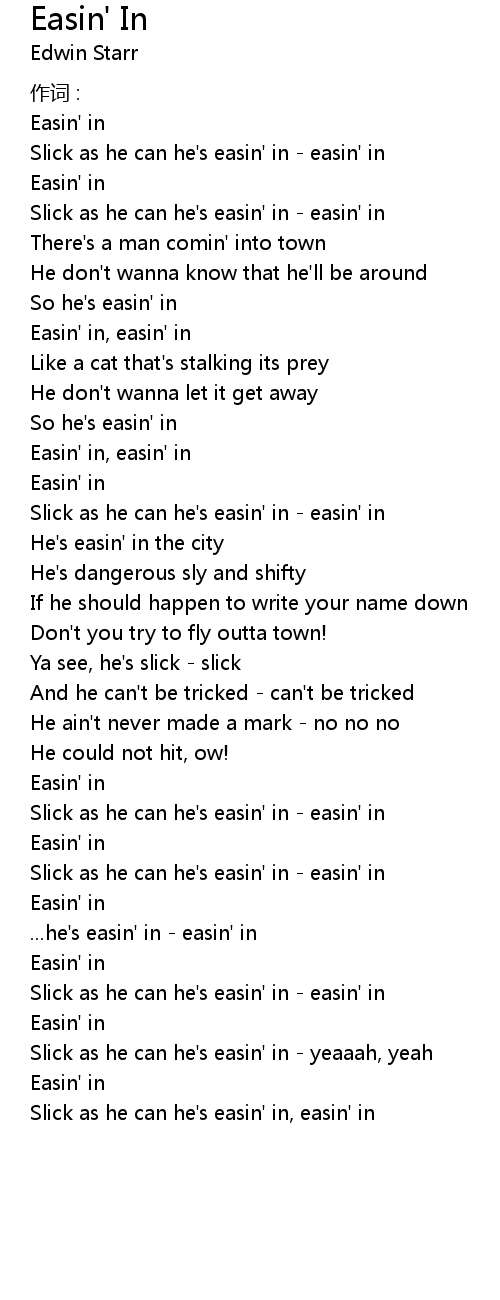 | Slick as he can he's easin' in - yeaaah, yeah | |