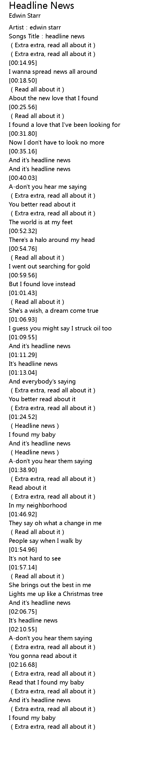 | [02:17.79] | (Extra extra, read all about it) |