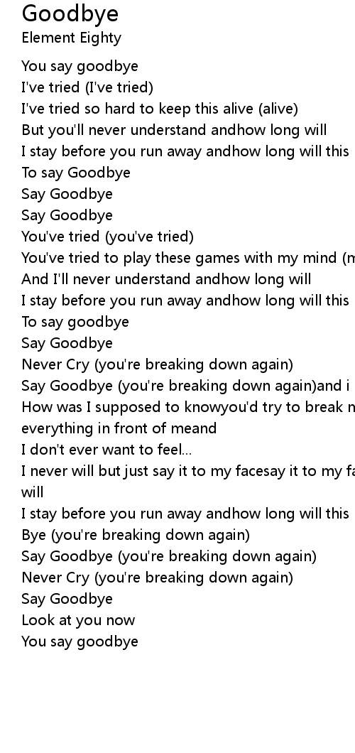 Say Goodbye (you're breaking down again)and i know you don't need me |