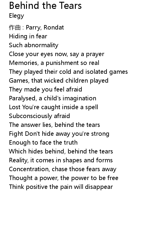 | Which hides behind, behind the tears | |