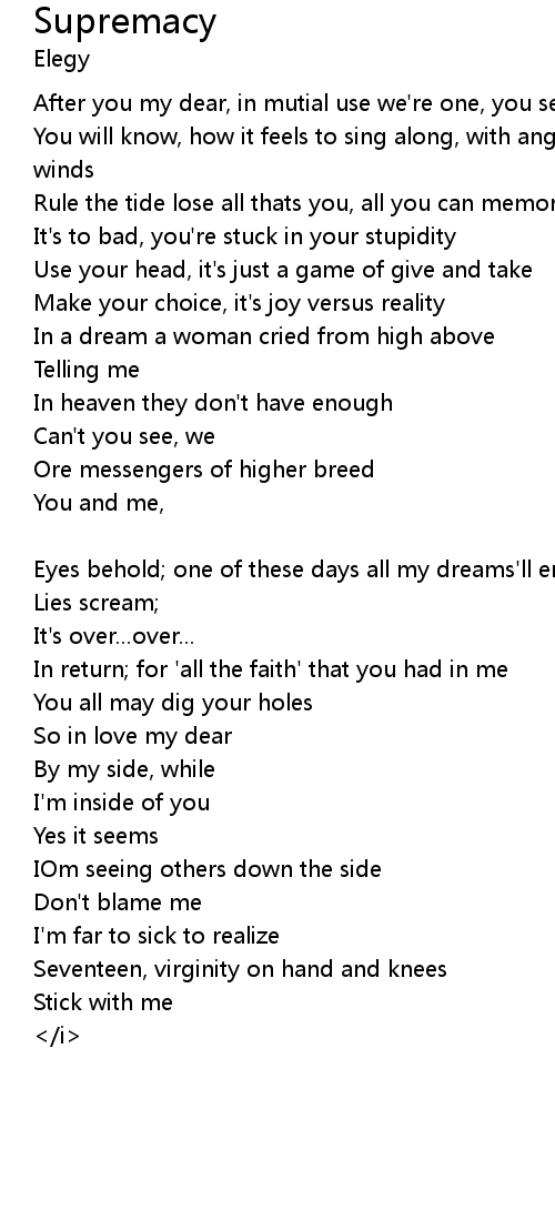 | We're all that's left of men's supremacy [Chorus] | |