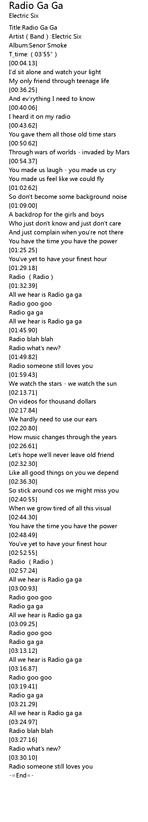| [03:19.97] | Radio ga ga |