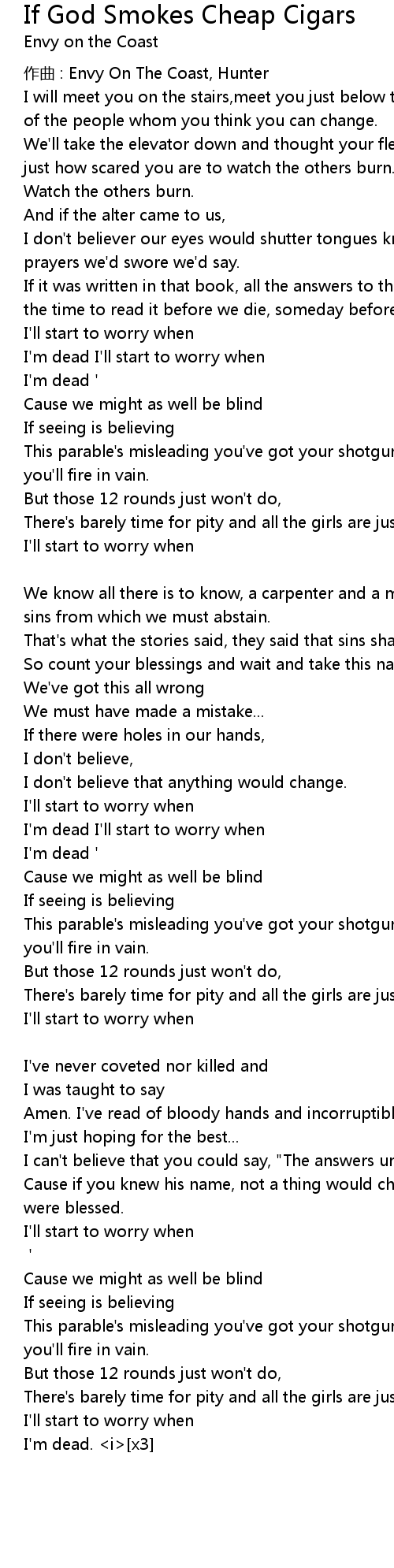| I don't believer our eyes would shutter tongues knotted as we stutter over prayers we'd swore we'd say. | |