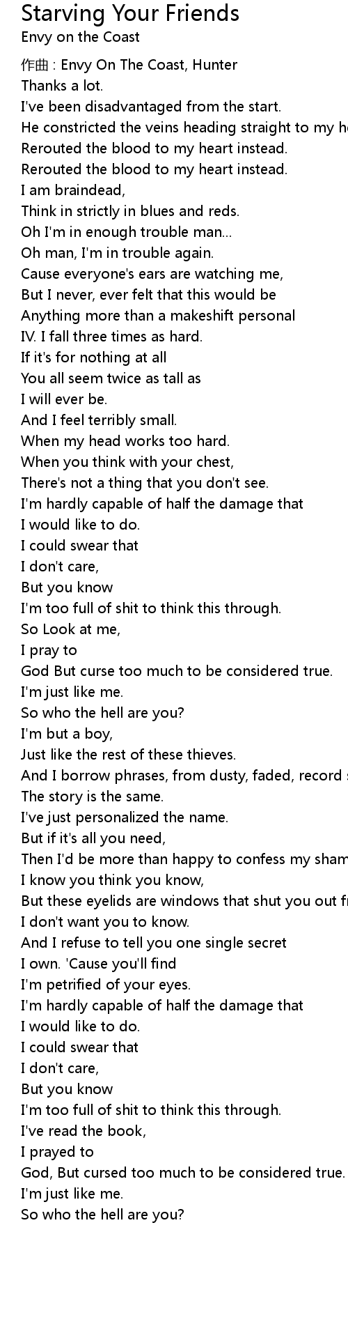 | zuò qǔ : Envy On The Coast, Hunter | |