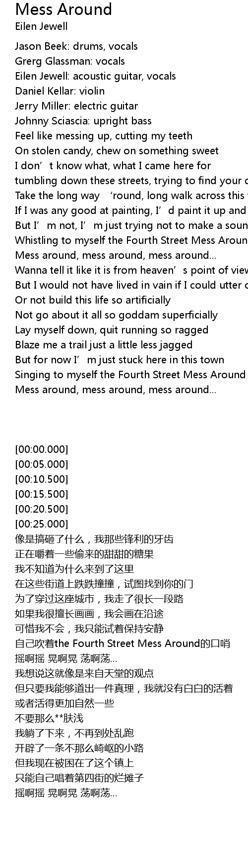 | [03:20.000] | Singing to myself the Fourth Street Mess Around |