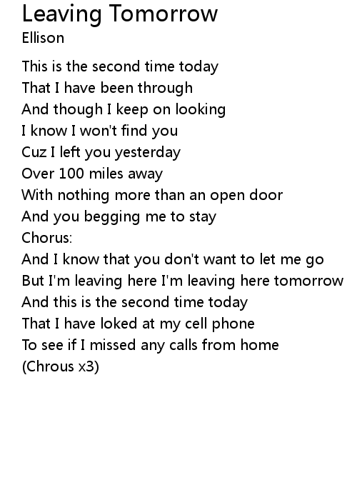 | Song | Leaving Tomorrow |