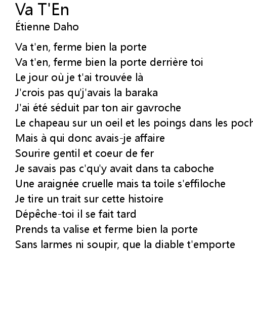 | Va t' en, ferme bien la porte derrie re toi | |