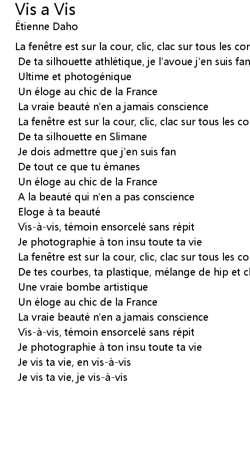 | Je vis ta vie, je visa vis |
