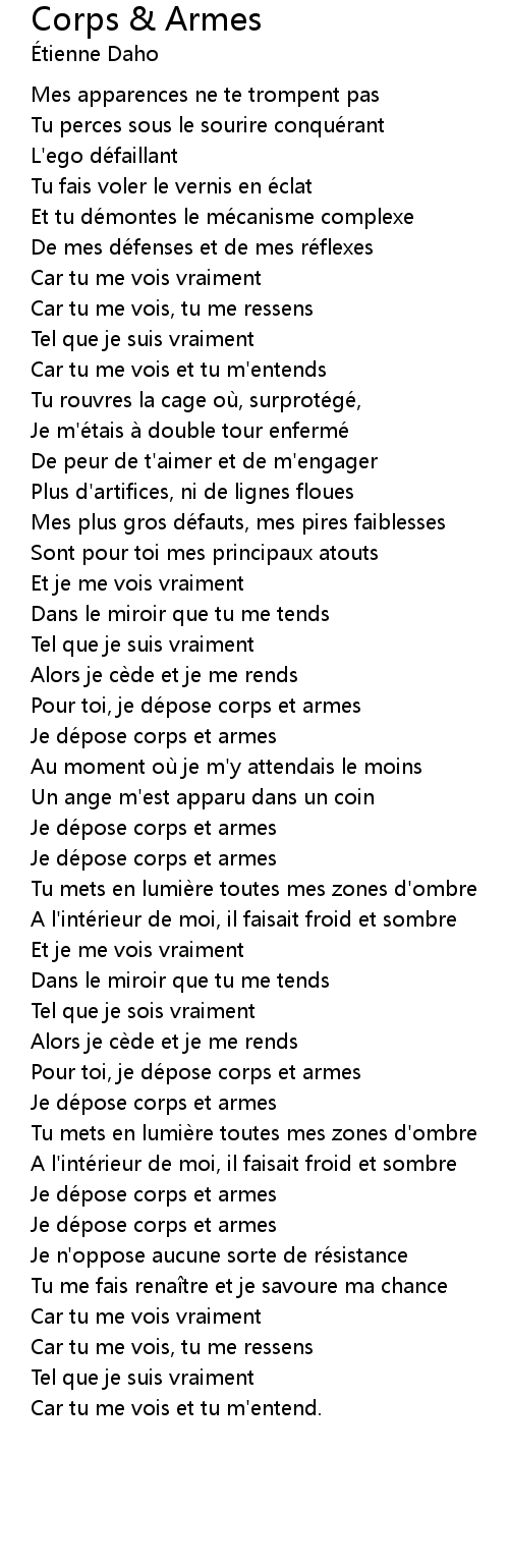 | Pour toi, je dé pose corps et armes | |