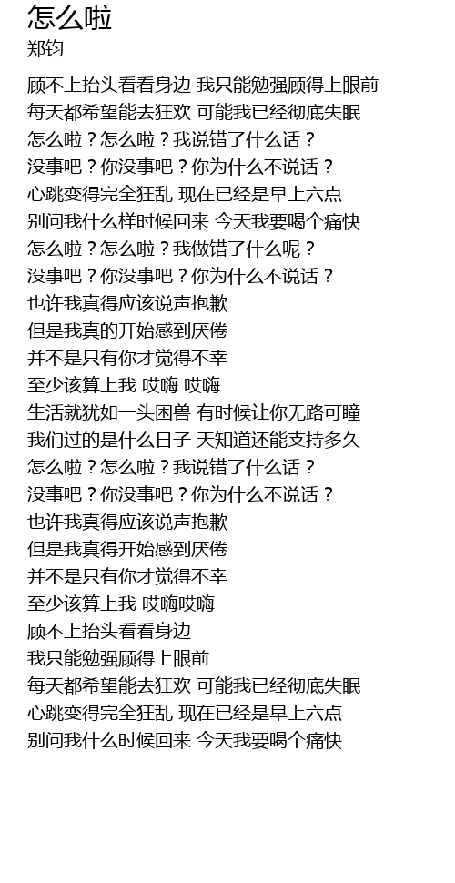 | [00:10.500] | gu bu shang tai tou kan kan shen bian wo zhi neng mian qiang gu de shang yan qian |