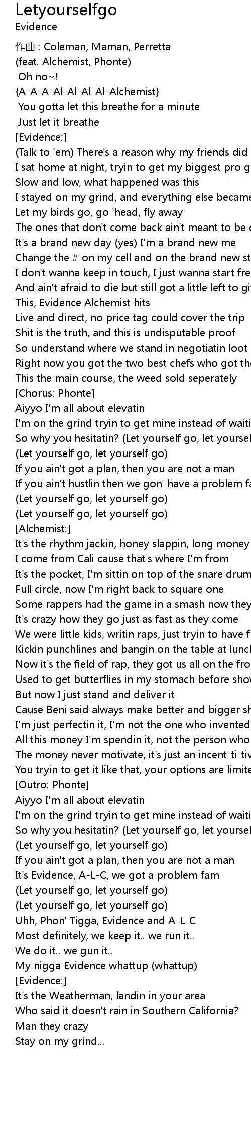 | So why you hesitatin? Let yourself go, let yourself go | |
