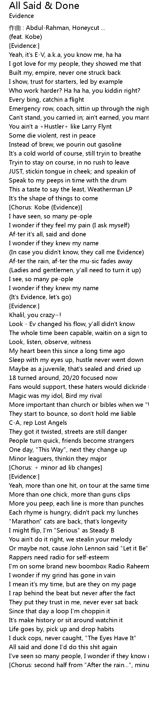 | [Chorus: second half from "After the rain...", minus ad libs] |