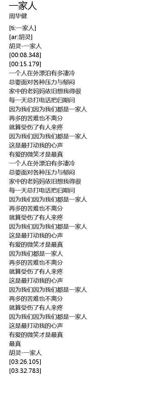| [03:20.404] | 胡灵-一家人 |