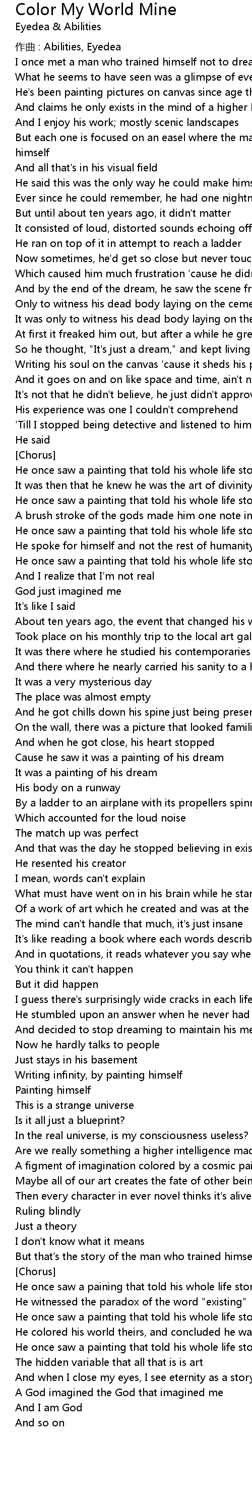 | Writing his soul on the canvas 'cause it sheds his planet light | |