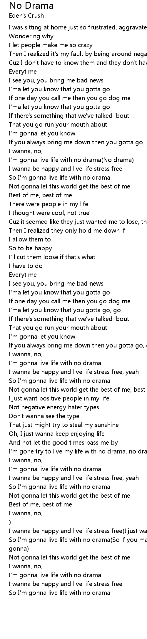 So I'm gonna live life with no drama(So if you makin' drama then maybe you're gonna) |