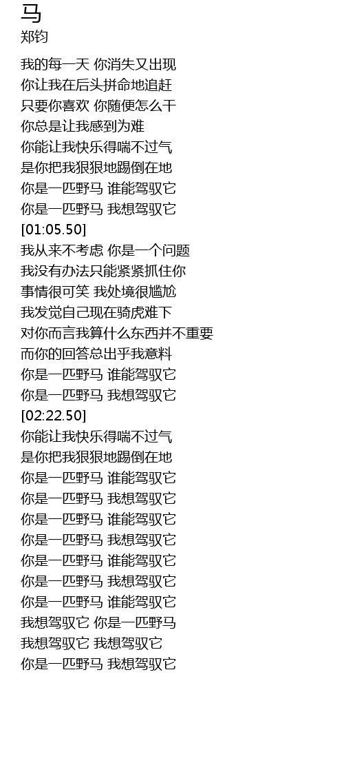 | [03:52.50] | 你是一匹野马 我想驾驭它 |