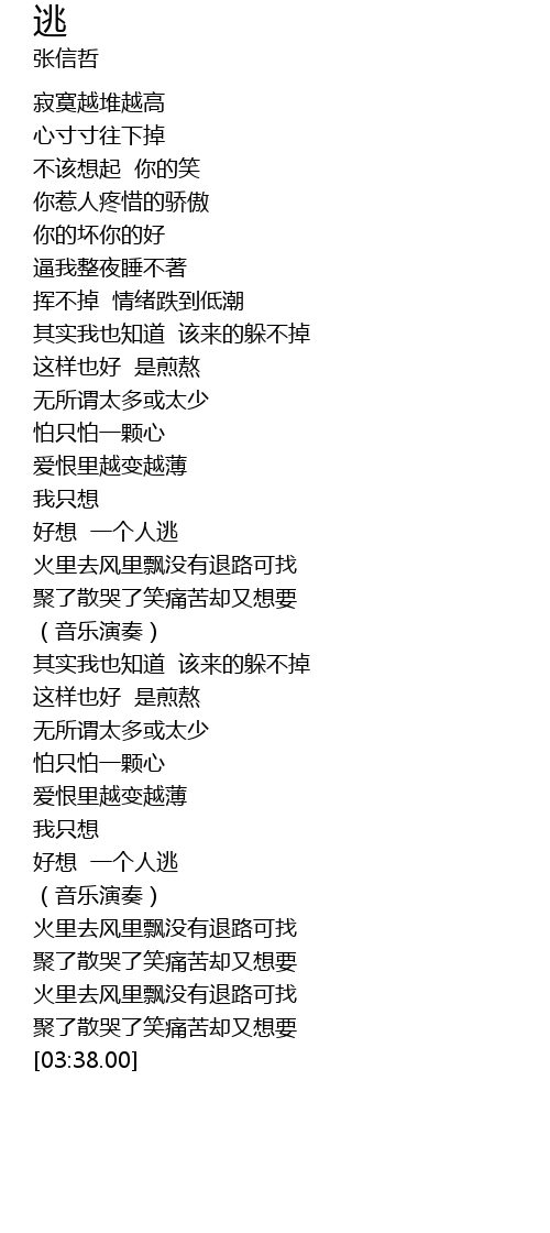 | [02:20.00] | 好想 一个人逃 |