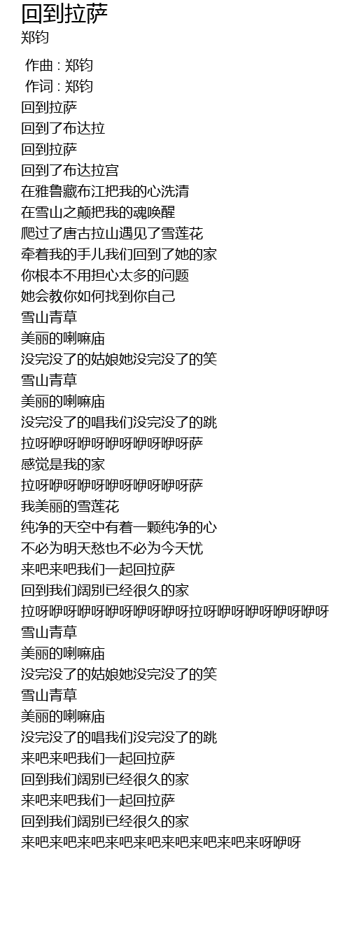 | [03:40.400] | 来吧来吧我们一起回拉萨 |