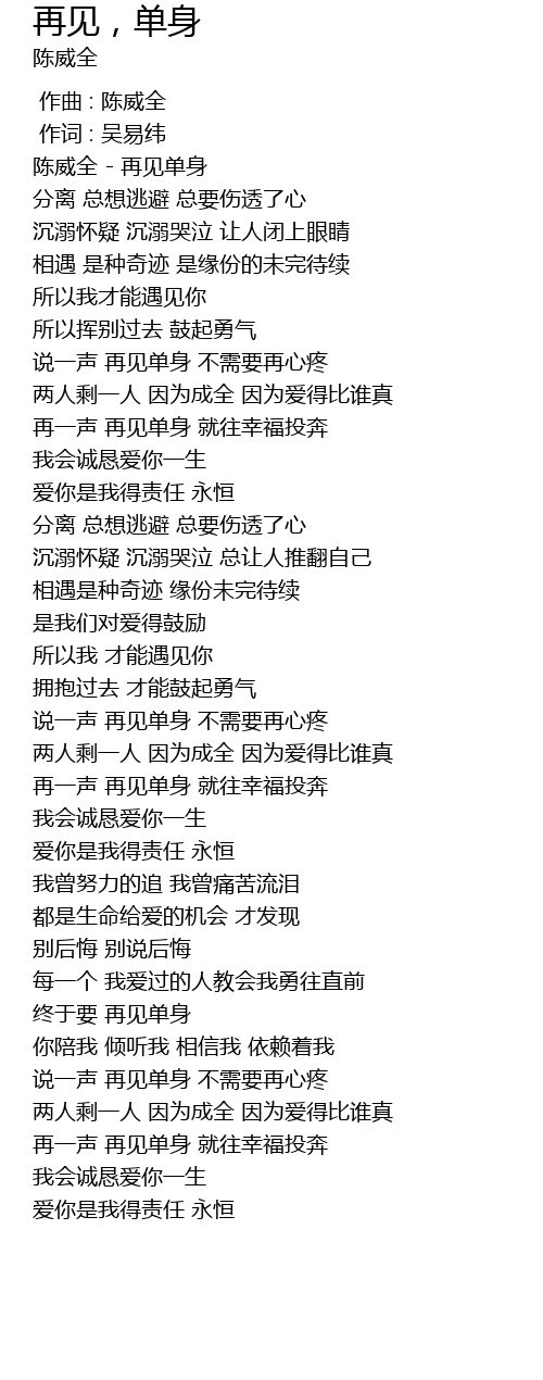 | [00:44.53] | 说一声 再见单身 不需要再心疼 |