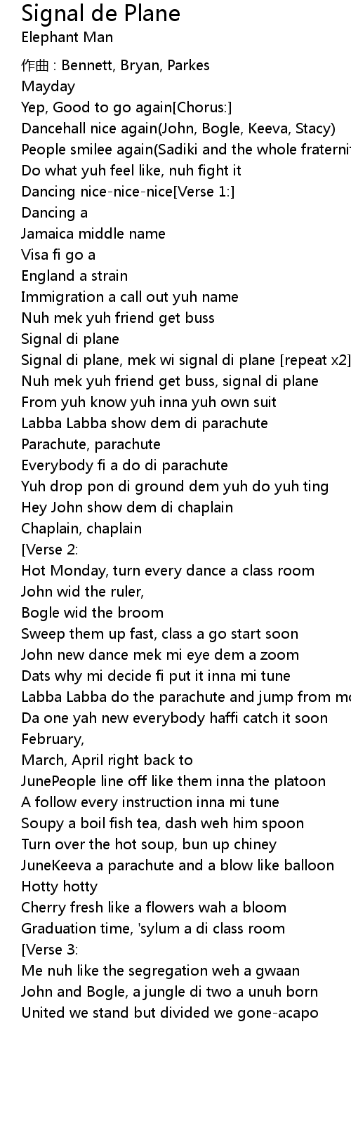 | Signal di plane, mek wi signal di plane [repeat x2] | |