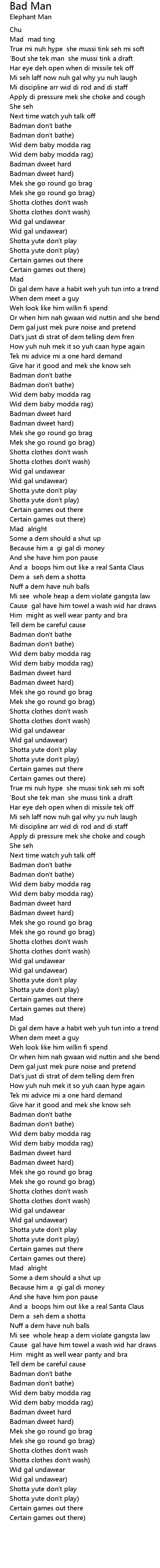 [01:52.91] Badman dweet hard)