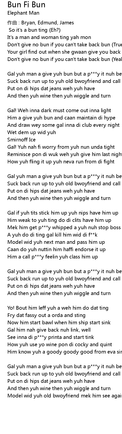 | Gal yuh man a give yuh bun but a p y it nuh betta than yearn | |