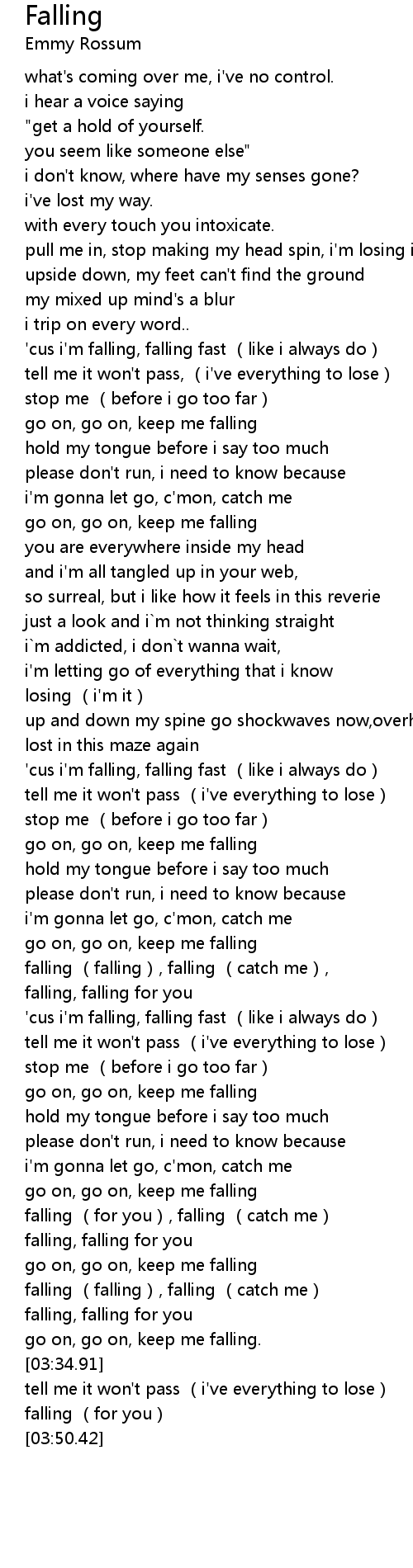 | [00:42.89] | ' cus i' m falling, falling fast like i always do |