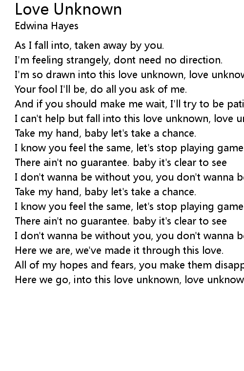 I can't help but fall into this love unknown, love unknown. |