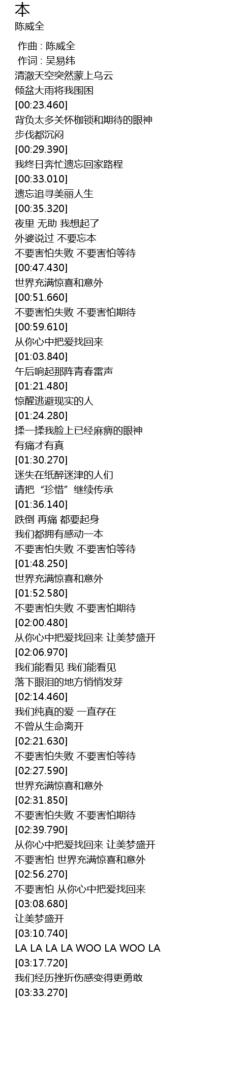 | [00:39.690] | wai po shuo guo bu yao wang ben |