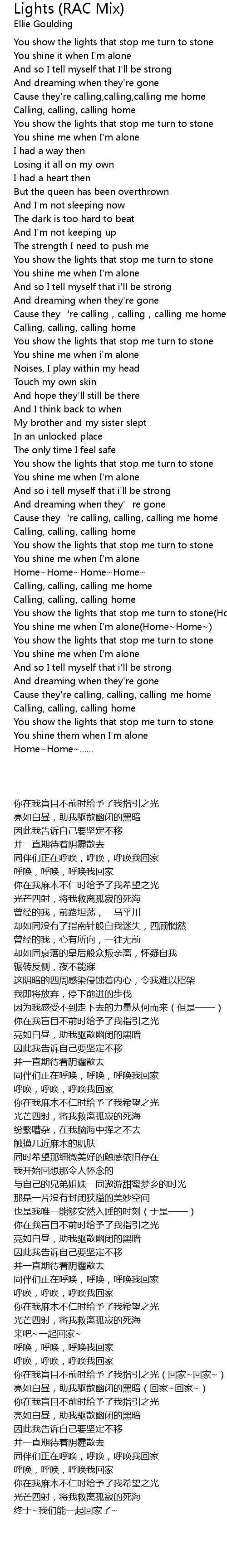 | [03:47] | You show the lights that stop me turn to stone Home Home |