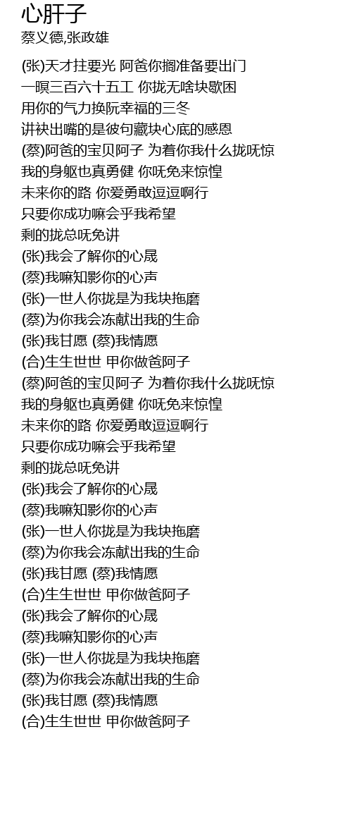 | [02:47.76] | (蔡)阿爸的宝贝阿子 为着你我什么拢呒惊 |
