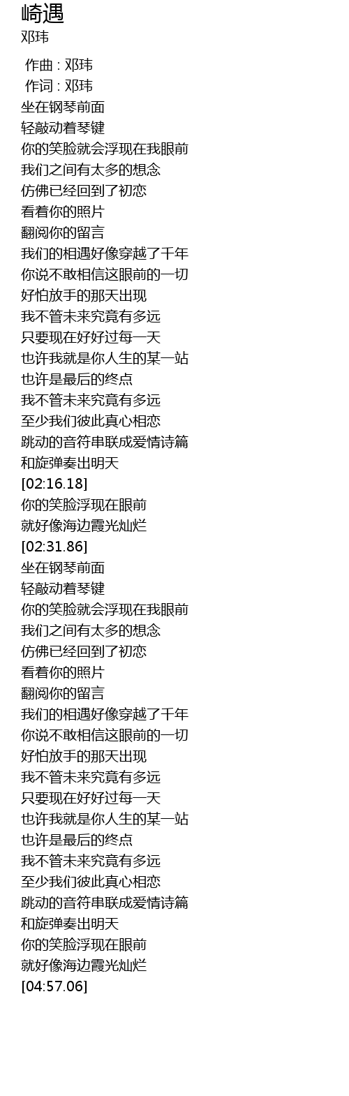 | [00:00.000] | zuò qǔ : dèng wěi |