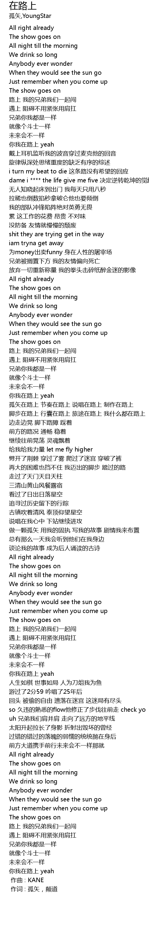 | [02:54] | nǐ wǒ zài lù shàng yeah |