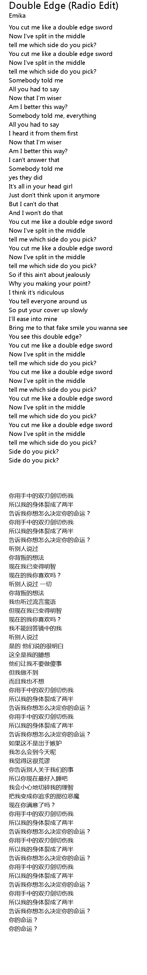 You cut me like a double edge sword |