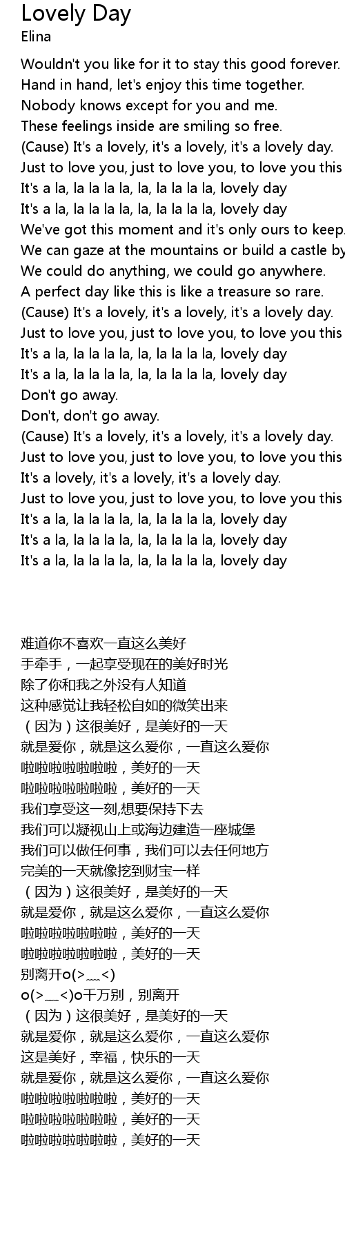 (Cause) It's a lovely, it's a lovely, it's a lovely day. |