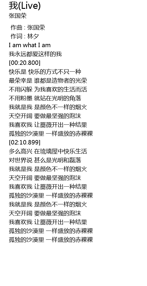 | [01:28.570] | 我就是我 是颜色不一样的烟火 |