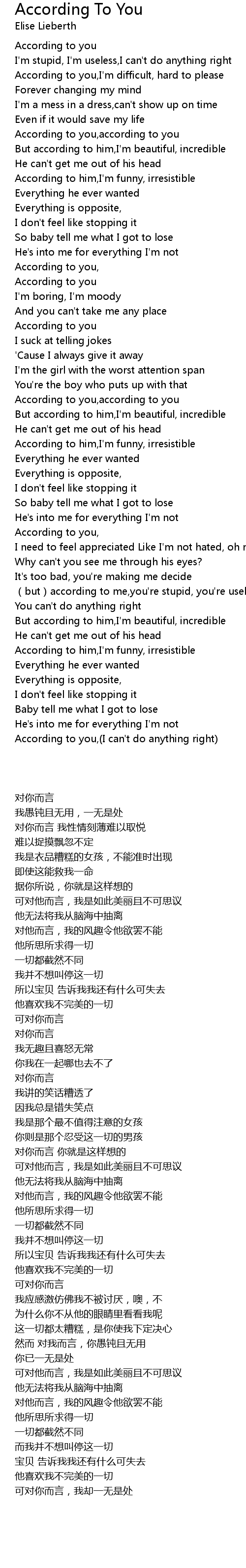 | [02:48.68] | According to you, I can' t do anything right |